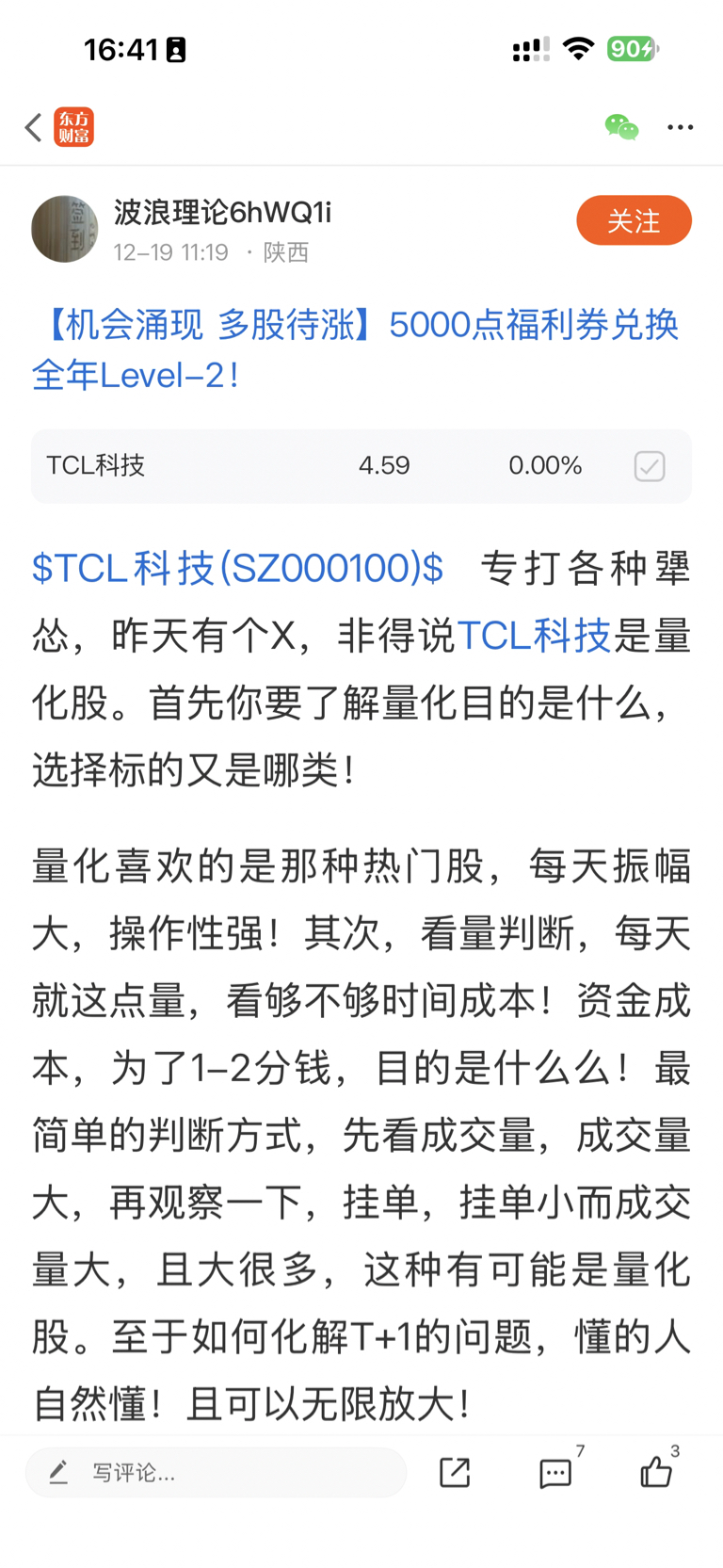 $TCL科技(SZ000100)$ 这人说tcl没有量化,哈哈。