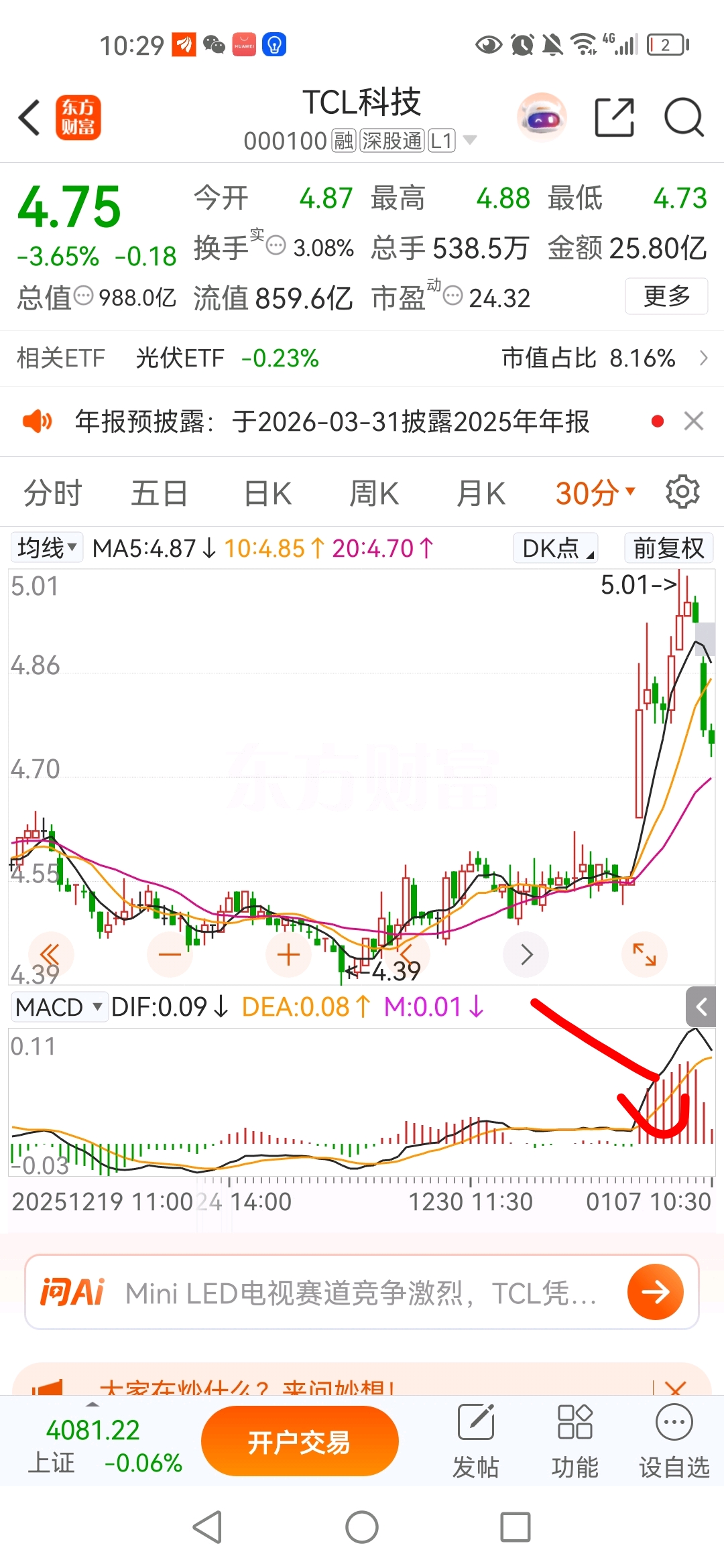 $TCL科技(SZ000100)$ 死叉了兄弟们快跑