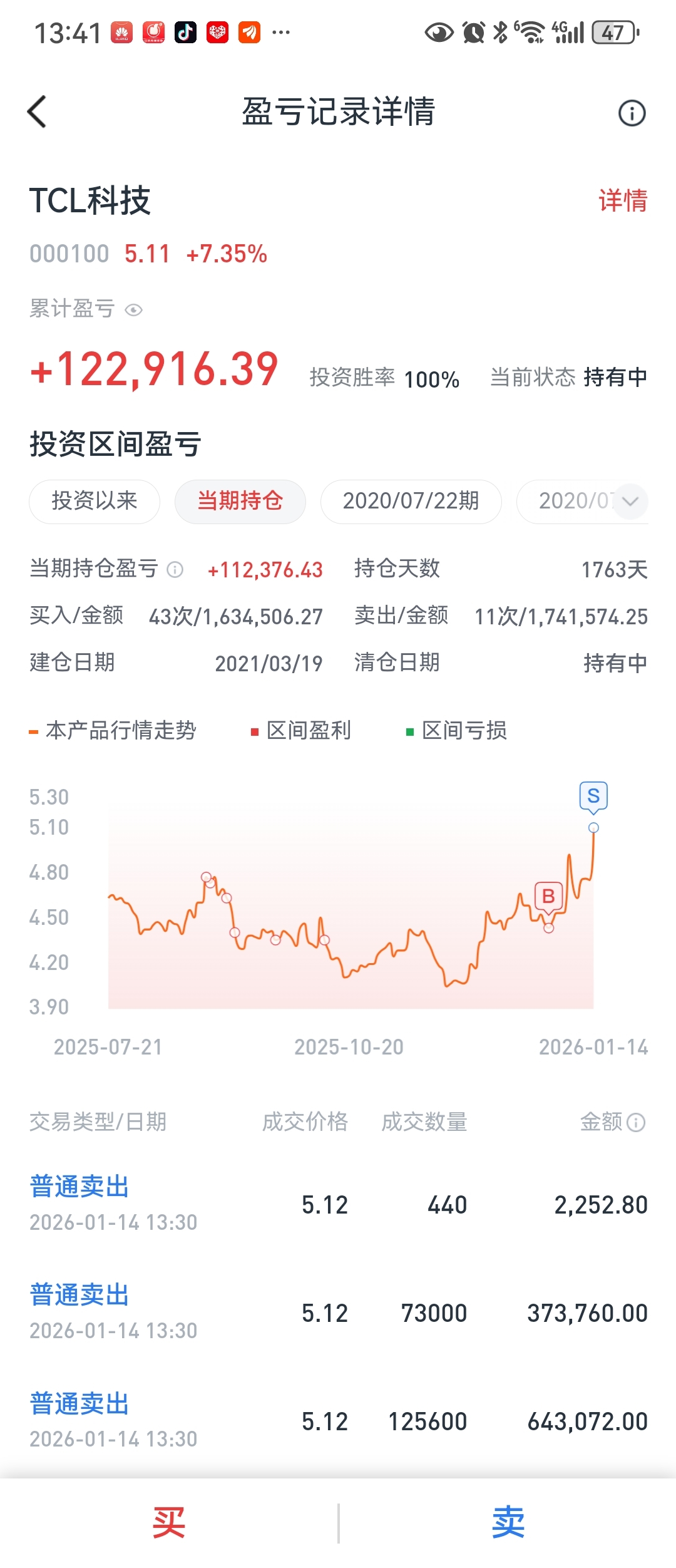 $TCL科技(SZ000100)$ 拿了5年多,从10块多,一直加仓做T,今天终于清仓了,这股拿的太痛苦了
