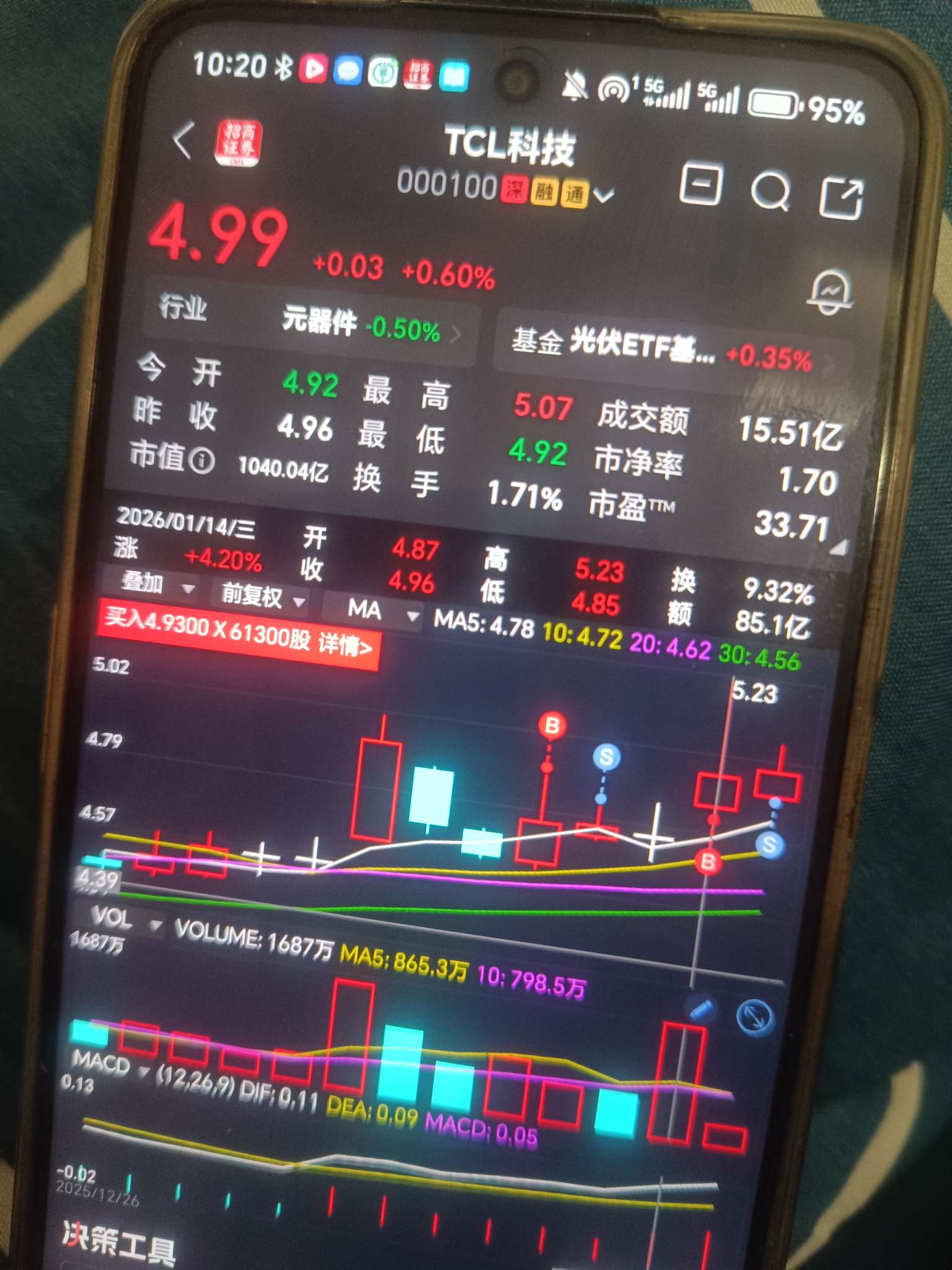 还会下来吗?出完了,早上5.06出一半,5.02出一半。没想到掉这么快,这个票我