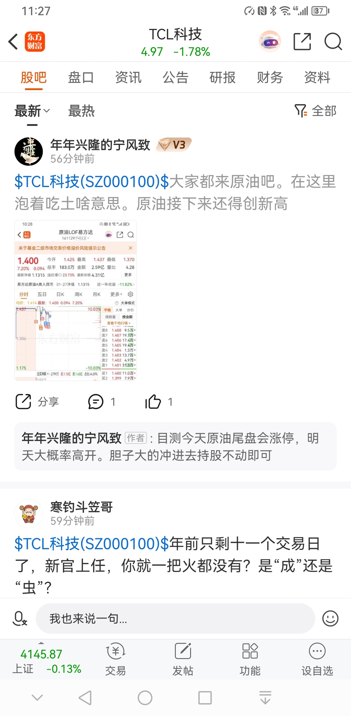 $TCL科技(SZ000100)$ 我都非常明确告诉大家换股去油气,还有人在这抗单,眞的被套的神仙难救啊!