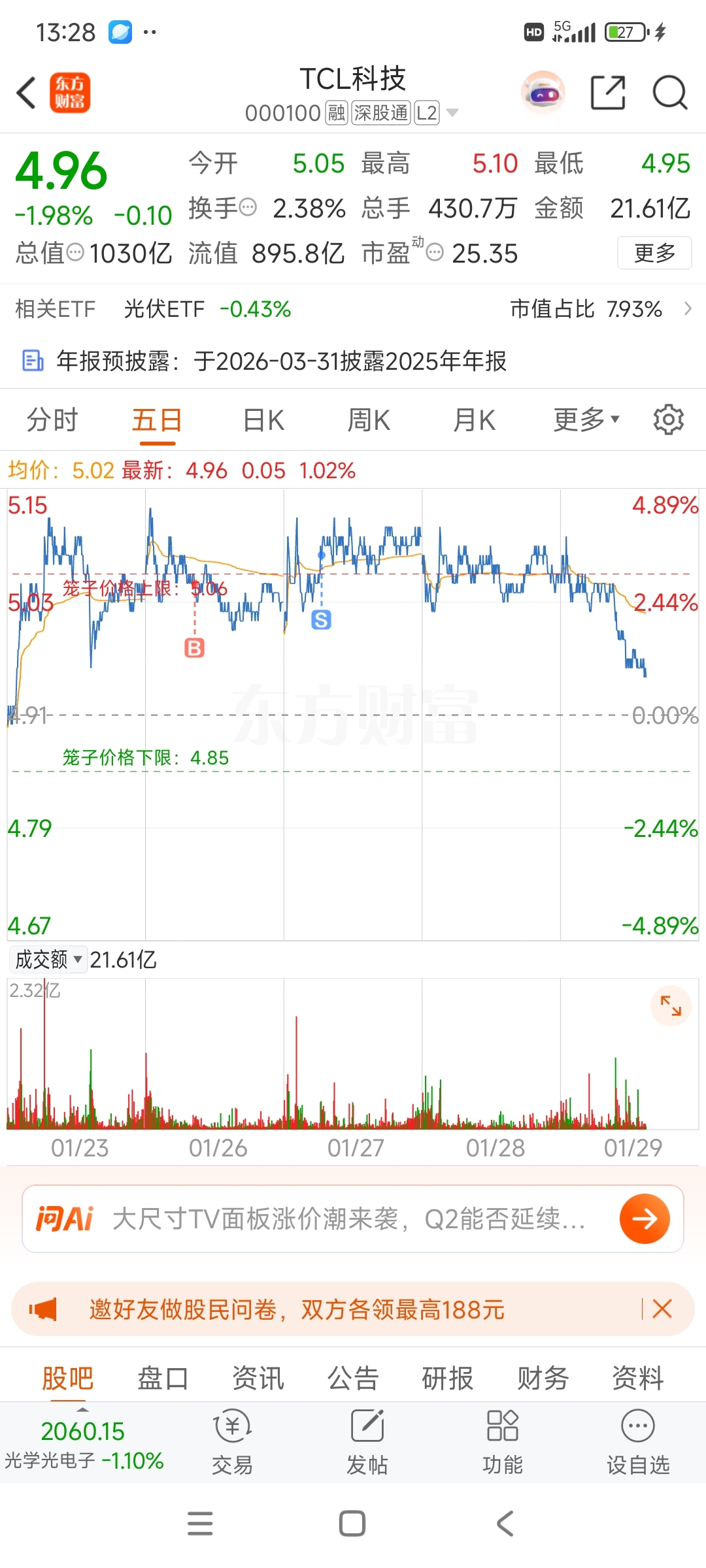 $TCL科技(SZ000100)$ 5.05买的,5.08卖了。不和恐怖份子为伍,早走早安心!