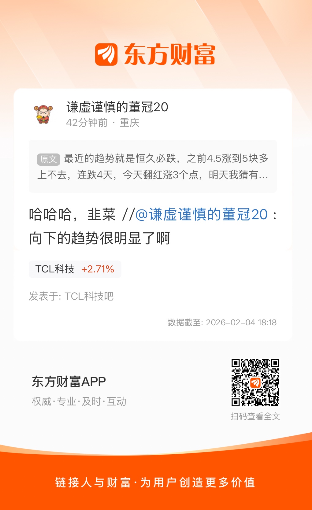 哈哈哈,韭菜 //@谦虚谨慎的董冠20 :向下的趋势很明显了啊