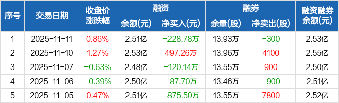 中成股份:融资净偿还228.78万元,融资余额2.51亿元(11-11)