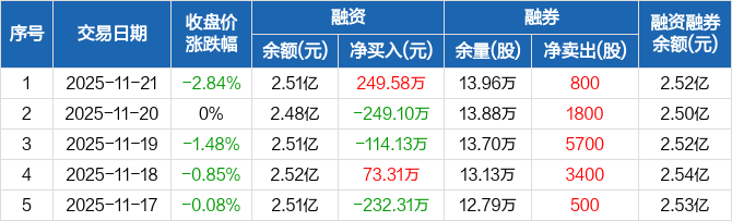 中成股份:融资净买入249.58万元,融资余额2.51亿元(11-21)