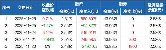 中成股份:融资净买入580.3万元,融资余额2.61亿元(11-26)
