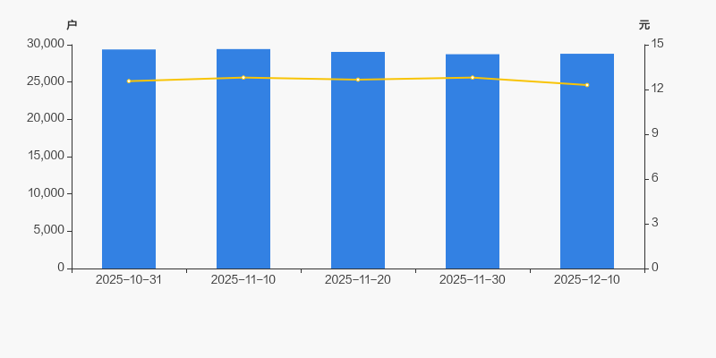 截至2025年12月10日,公司最新总股本为3.37亿股,其中流通股本为3.08亿股。户均持有流通股数量为1.07万股,较上期略有下降;户均流通市值13.16万元。