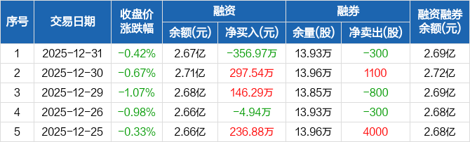 中成股份:融资净偿还356.97万元,融资余额2.67亿元(12-31)