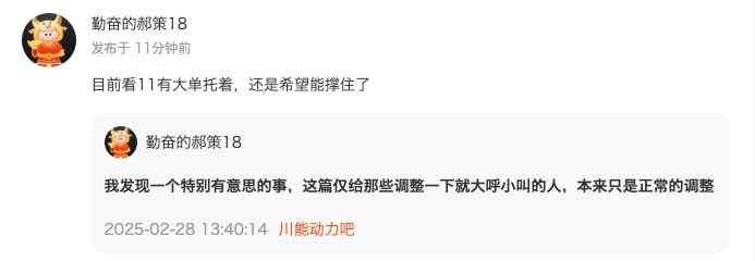 温馨提示: 1.根据《证券法》规定,禁止编造、传播虚假信息或者误导性信息,扰乱证券市场;2.用户在本社区发表的所有资料、言论等仅代表个人观点,与本网站立场无关,不对您构成任何投资建议。用户应基于自己的独立判断,自行决定证券投资并承担相应风险。《东方财富社区管理规定》