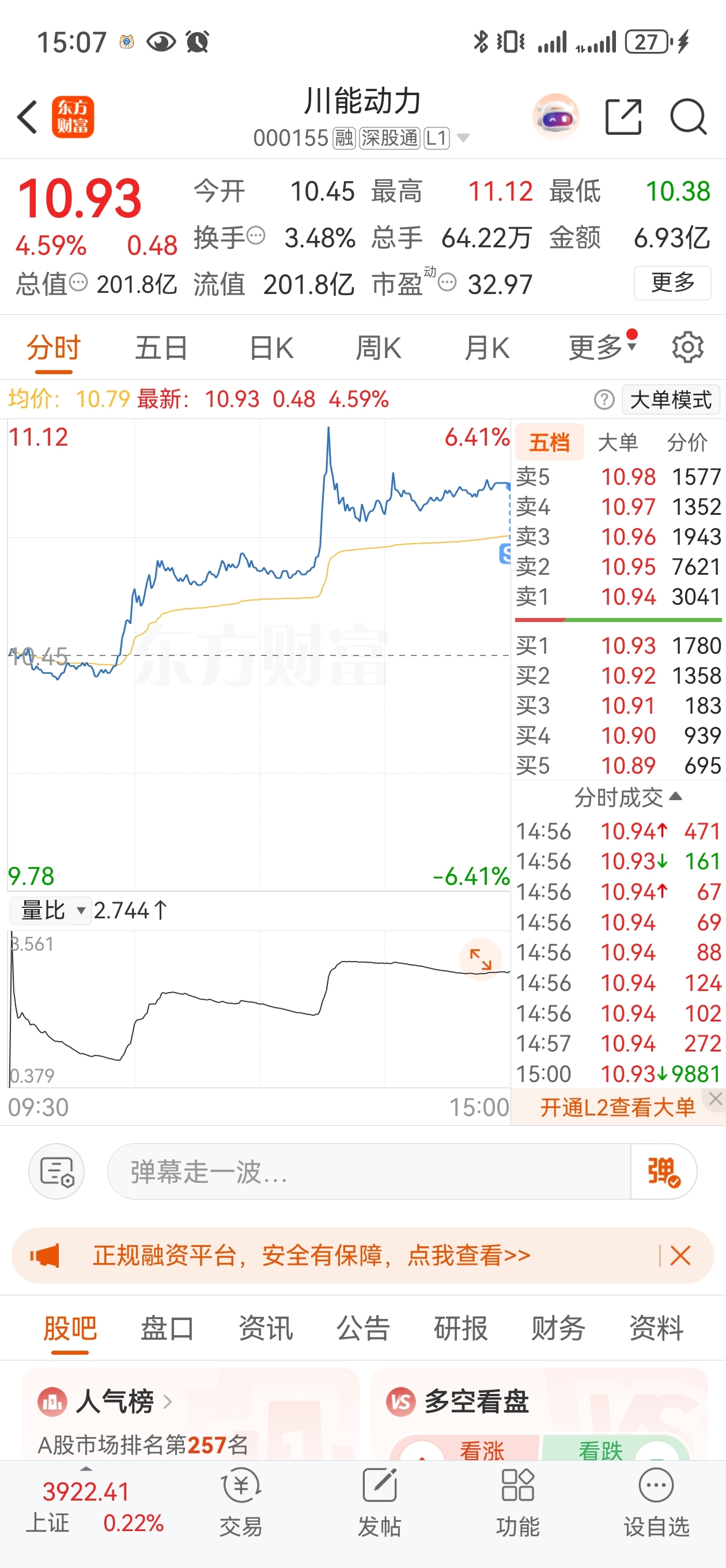 $川能动力(SZ000155)$ 思考了一下,竞价还是卖了,缺口也补了,怕回调
