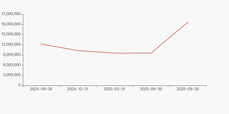 截至2025年9月30日,公司最新总股本为18.46亿股,且均为流通股。户均持有流通股数量由上期的1.55万股上升至1.66万股,户均流通市值17.37万元。