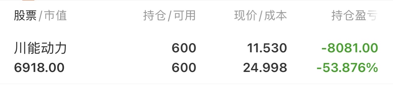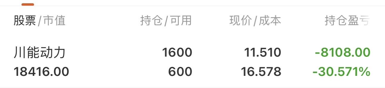 $川能动力(SZ000155)$ 5年我都没补过仓,今天上午直接在大盘高位补了下仓,我是一颗小白菜。