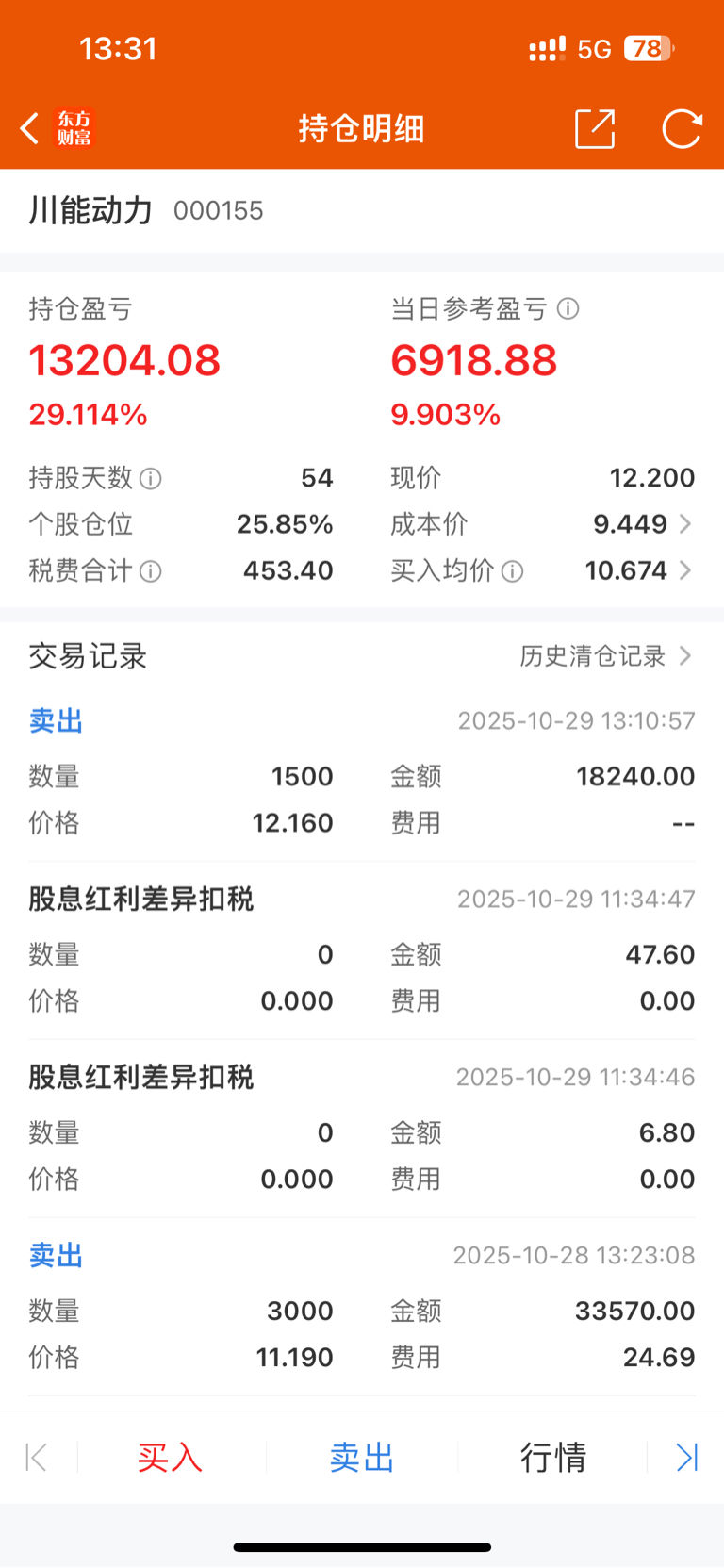 $川能动力(SZ000155)$ 埋伏54天,终于等到,仓位也让我这几天分批出了60%了