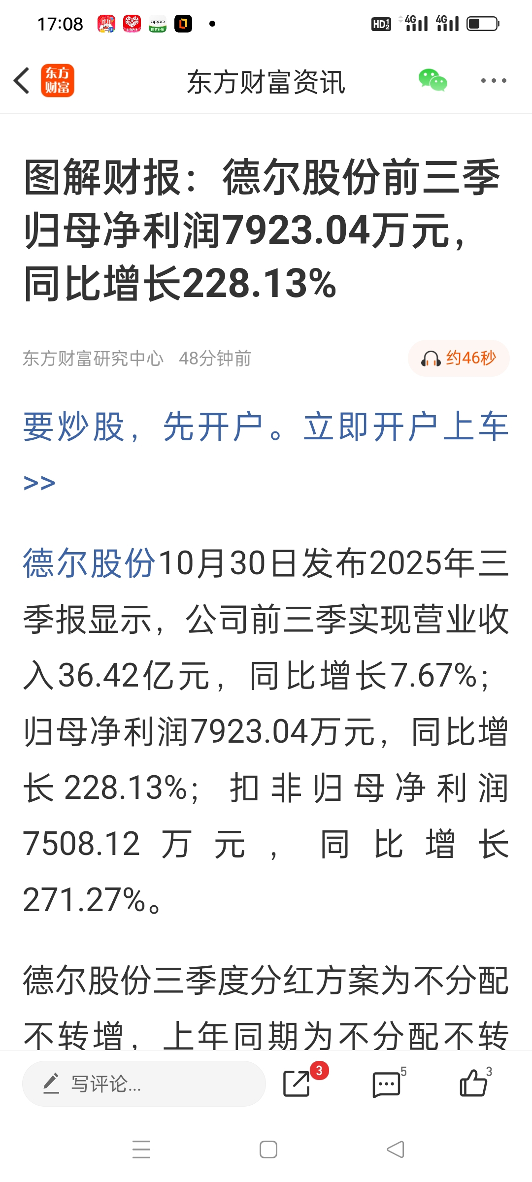 错过川能动力的看这里,一只业绩大增的固态电池票300473德尔股份,三季报业绩翻两倍近8000万,固态电池中试线马上完工,总市值才40几亿,是目前A股市值最低估的固态电池。股价有翻贝潜力