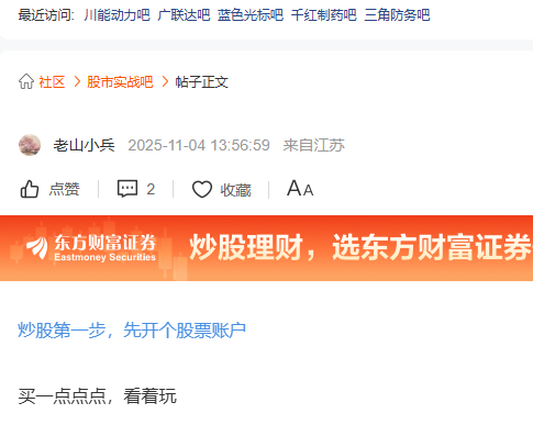 温馨提示: 1.根据《证券法》规定,禁止编造、传播虚假信息或者误导性信息,扰乱证券市场;2.用户在本社区发表的所有资料、言论等仅代表个人观点,与本网站立场无关,不对您构成任何投资建议。用户应基于自己的独立判断,自行决定证券投资并承担相应风险。《东方财富社区管理规定》