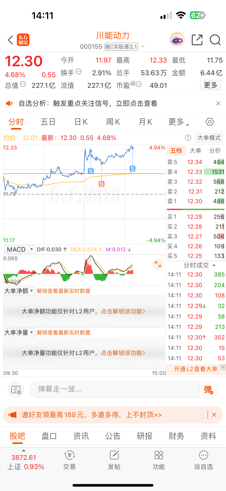 $川能动力(SZ000155)$ 不知道天t飞没有13.30估计要洗一个上午