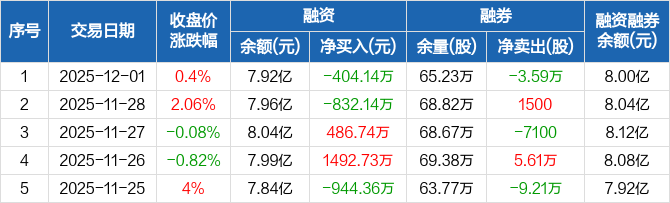 川能动力:融资净偿还404.14万元,融资余额7.92亿元(12-01)