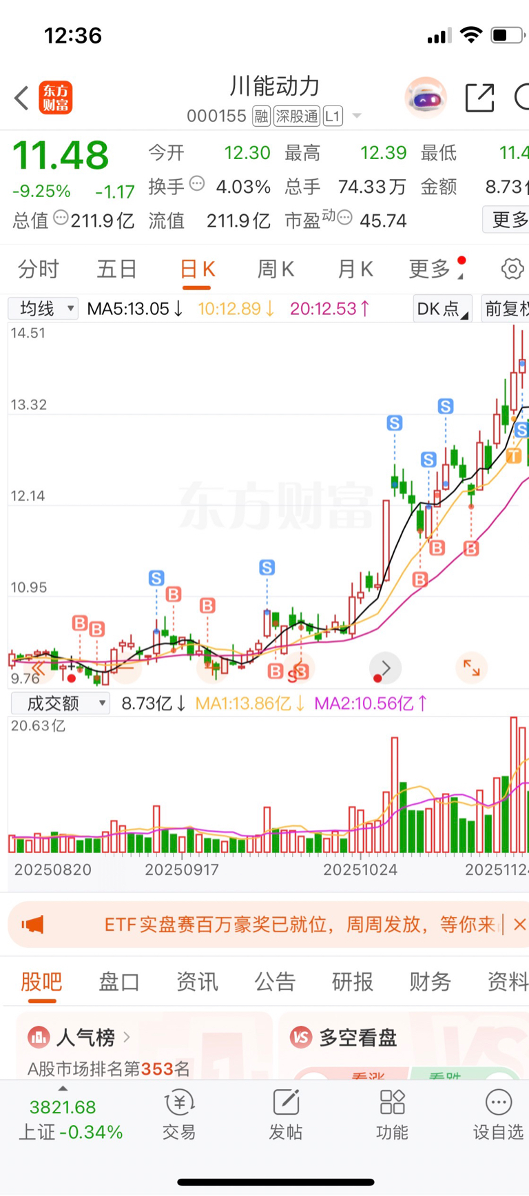 $川能动力(SZ000155)$ 14.20出的,现在反过来看,11的到了就进!