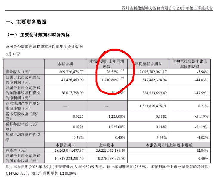 2025年三季报显示,川能动力归母净利润同比下降44.83%,表面数据看似黯淡,但第三季度单季净利润同比暴增1210.8%的亮眼表现,揭示了公司业绩已步入改善通道。这一反差背后,是风电业务短期承压与锂电业务蓄势待发的动态平衡。随着四季度锂价飙升、产能释放及新能源项目并网提速,公司业绩反转的支撑逻辑正逐步清晰。