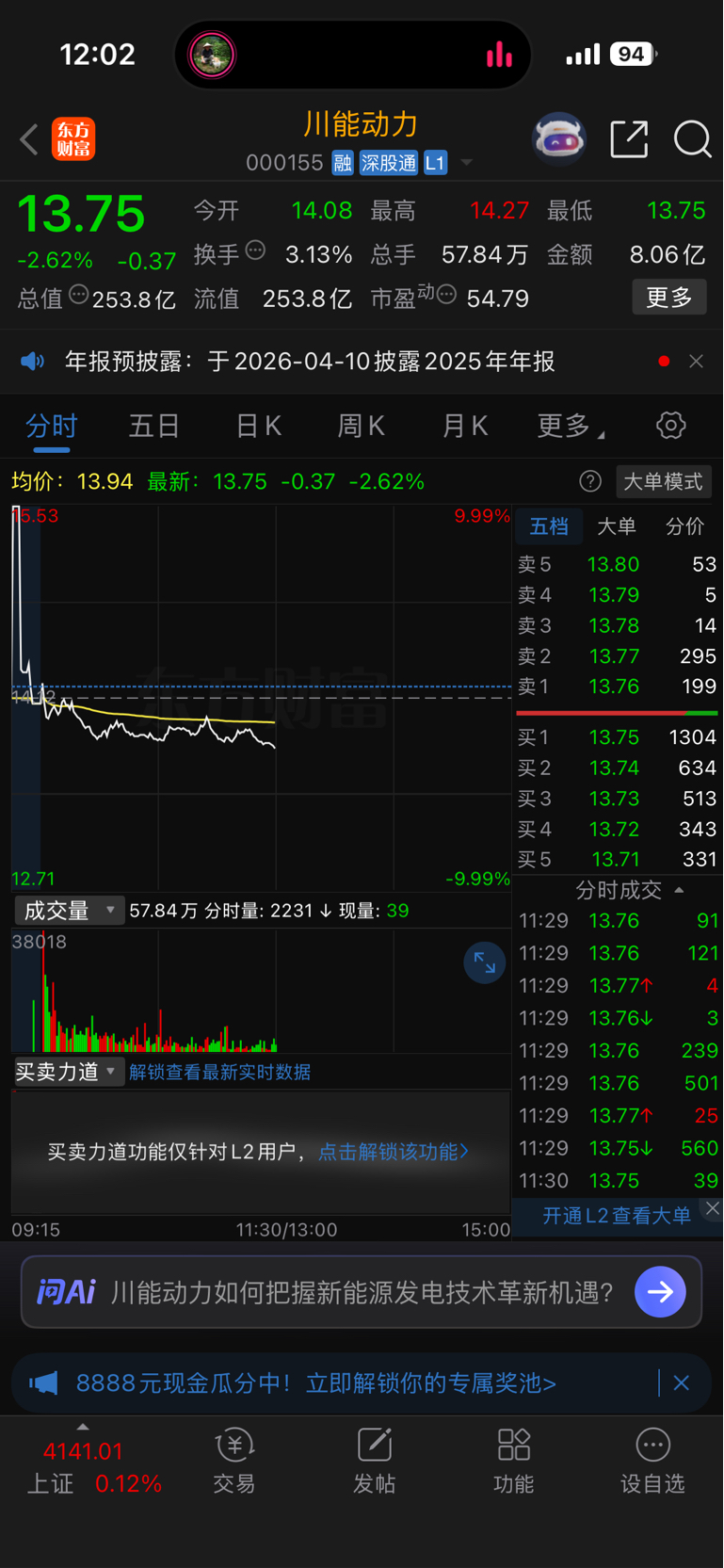 $川能动力(SZ000155)$