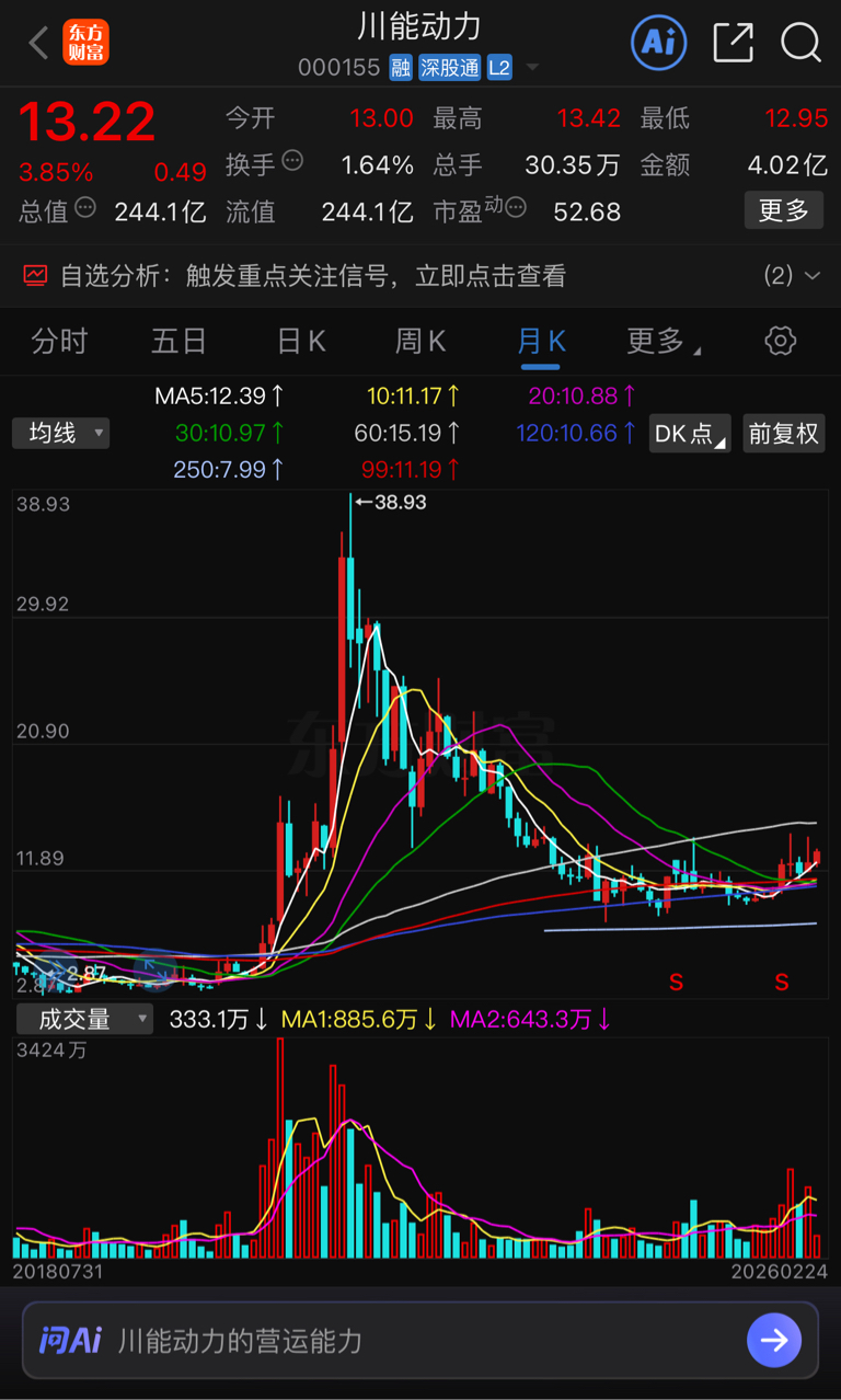 $川能动力(SZ000155)$ 过了六十月线才是主升浪,目标 45