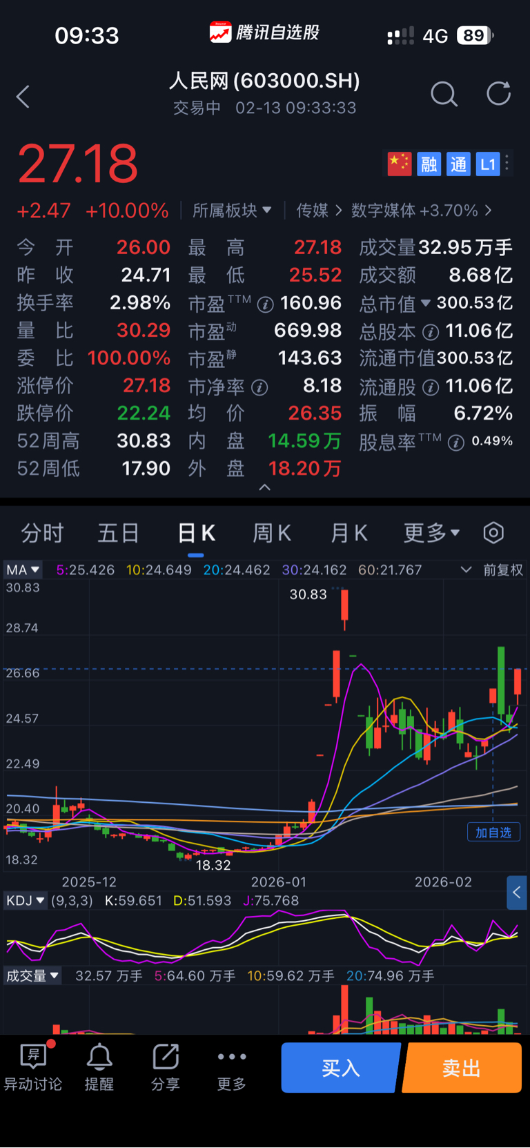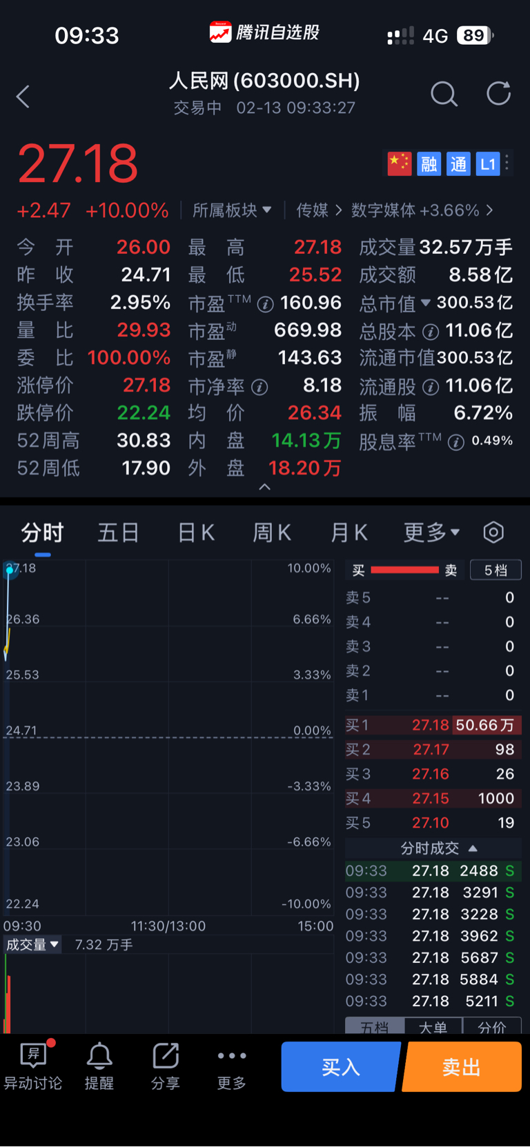 观察人民网昨天没有入手,昨天加仓华数了