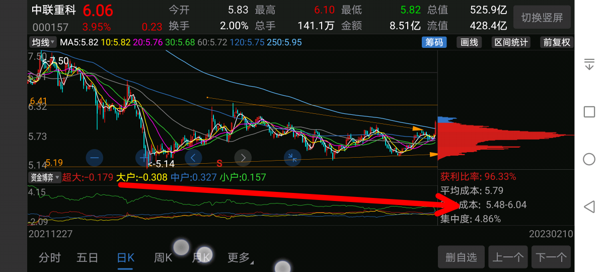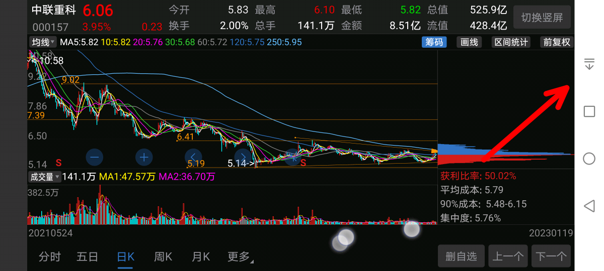 中联重科:15元到5元筑底反复震荡,月线超跌均线,skdj拐头看多周线看多日线看