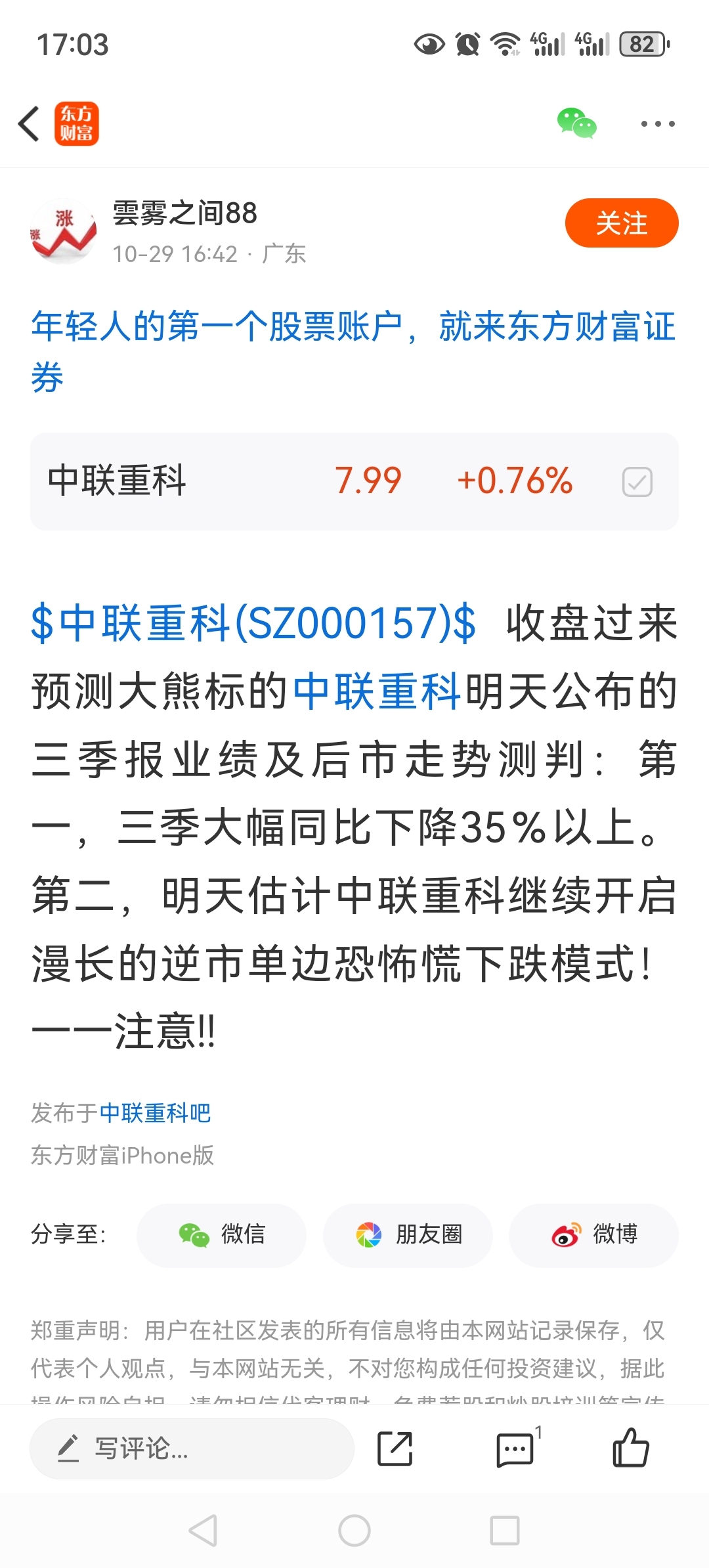 温馨提示: 1.根据《证券法》规定,禁止编造、传播虚假信息或者误导性信息,扰乱证券市场;2.用户在本社区发表的所有资料、言论等仅代表个人观点,与本网站立场无关,不对您构成任何投资建议。用户应基于自己的独立判断,自行决定证券投资并承担相应风险。《东方财富社区管理规定》