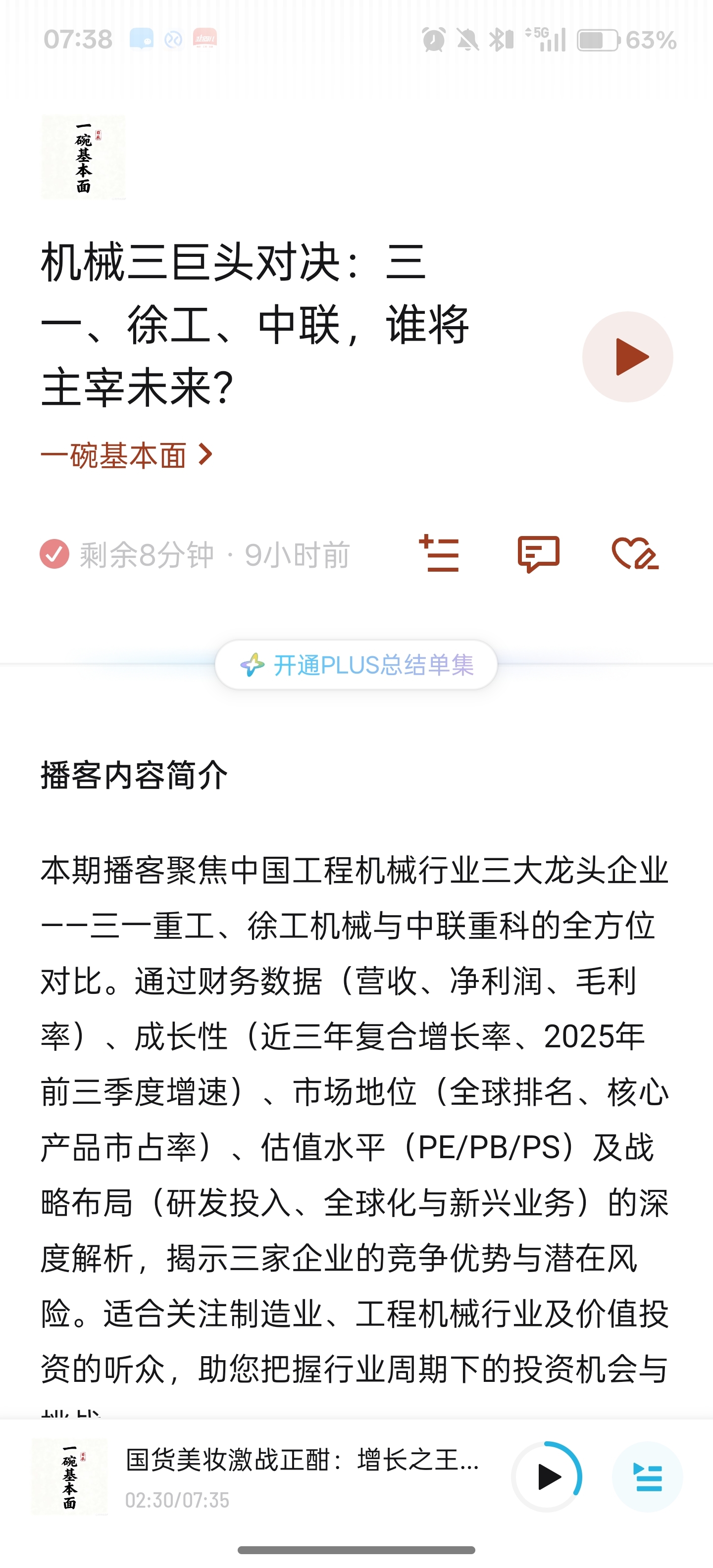 小宇宙app,主理人“一碗基本面”,11.5发的一篇关于“中联重科”的播客挺好的