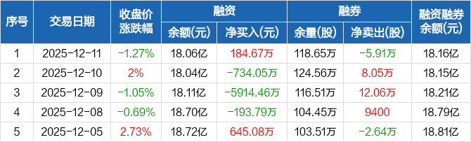 中联重科:融资净买入184.67万元,融资余额18.06亿元(12-11)