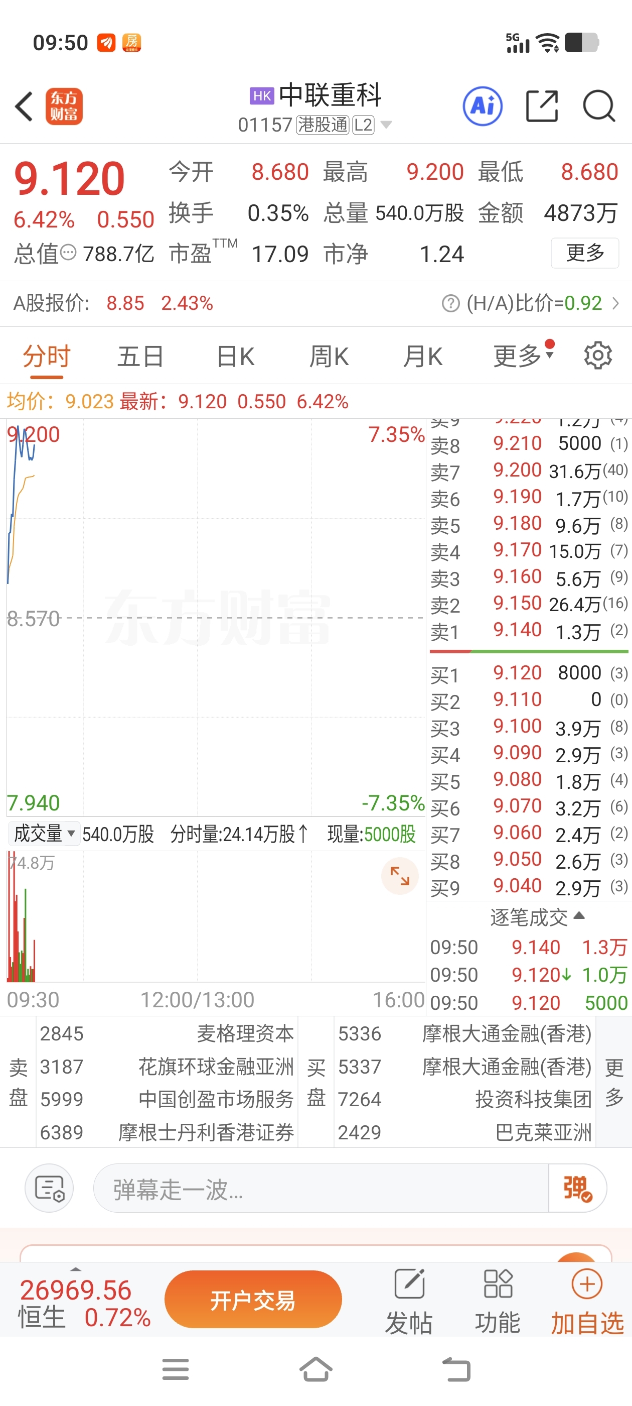 $中联重科(SZ000157)$ 港股都涨5个点了,你不快点跟上