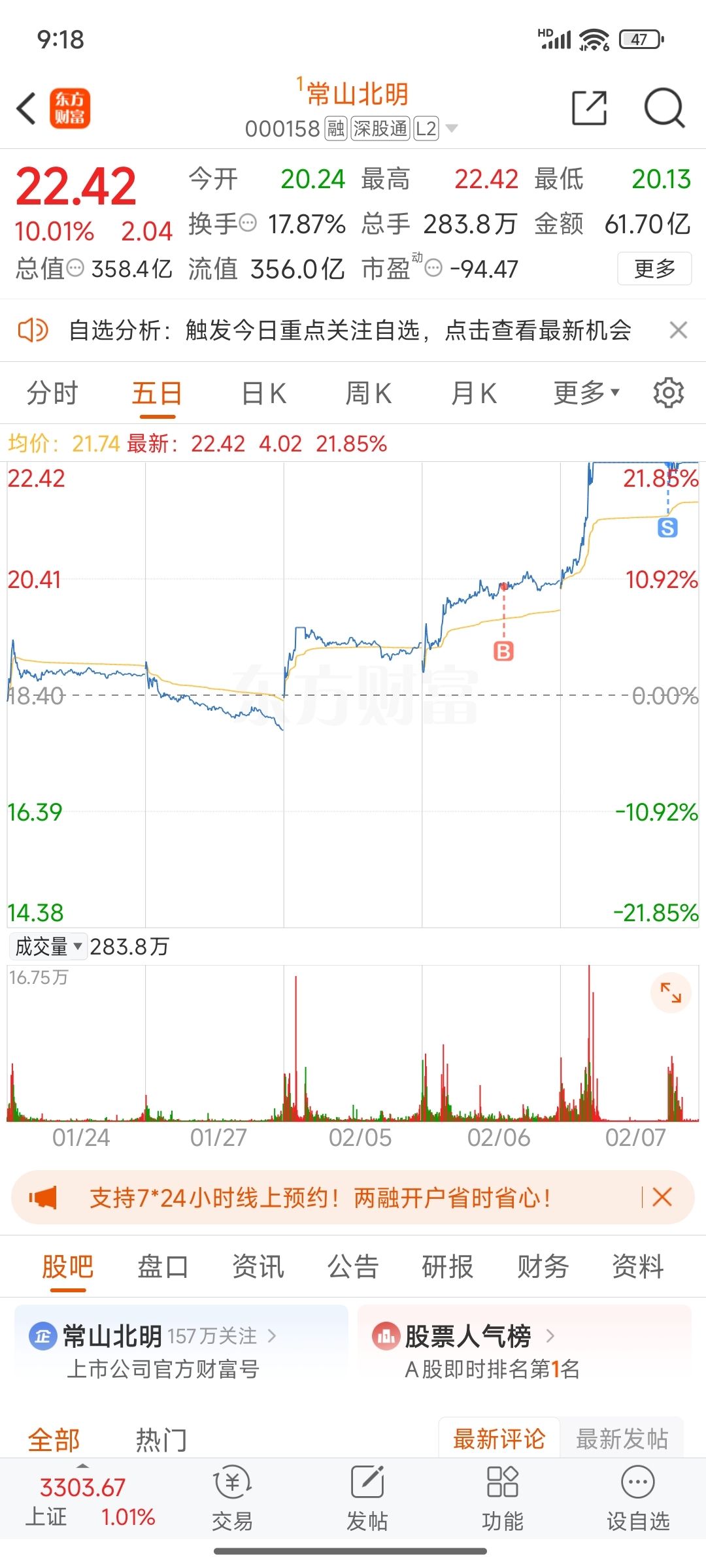 $常山北明(SZ000158)$ 主力太考验我了,看到封单急剧减少,就卖了啊