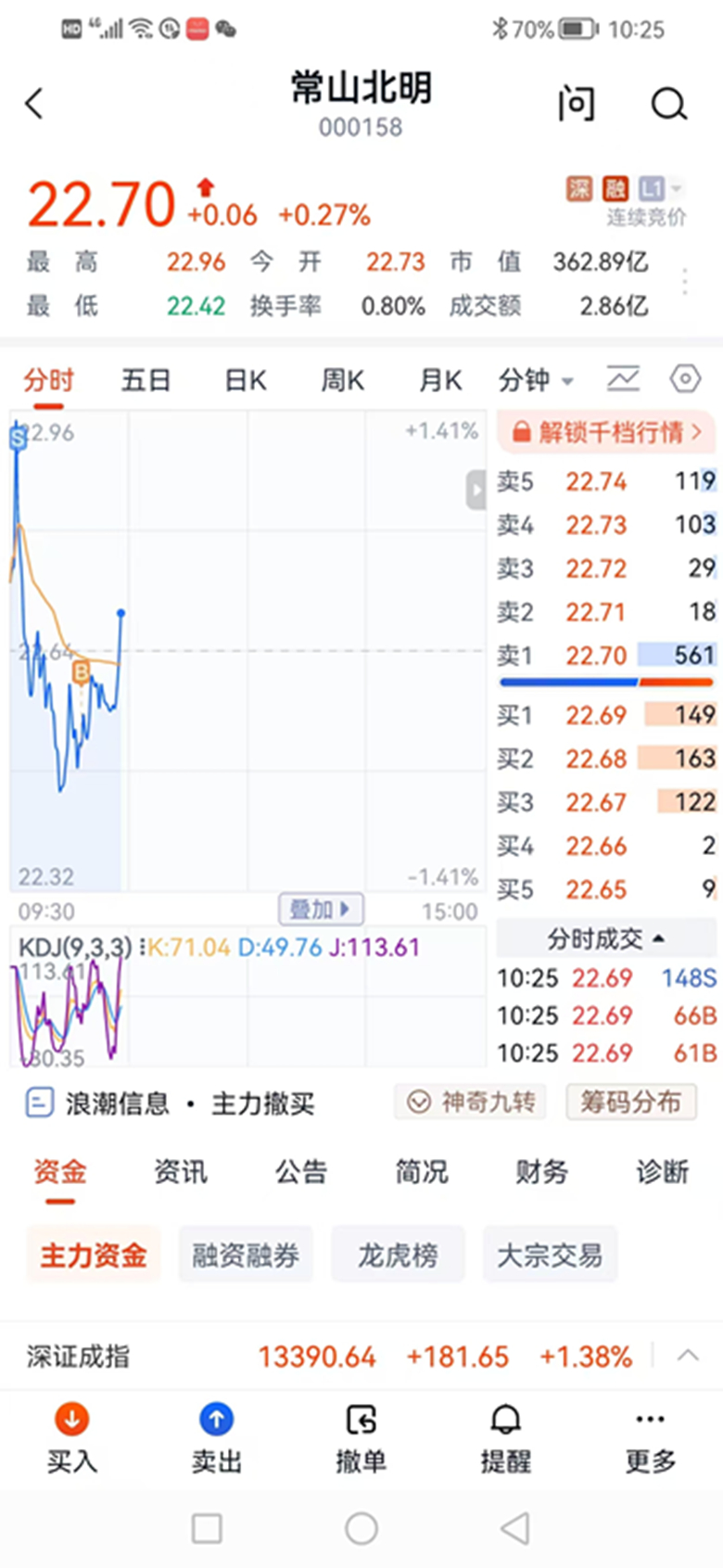 常山北明今天早盘做了个T,每股赚了0.4元(22.90卖出,22.50买入)。