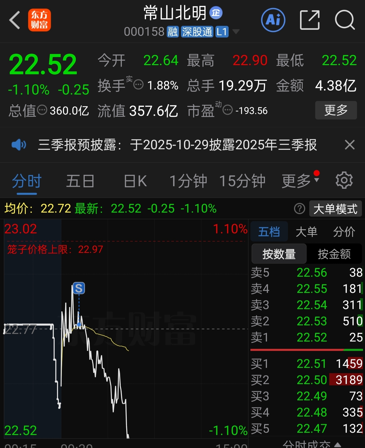 $常山北明(SZ000158)$ 势头不对赶紧跑,少赚也比套牢好