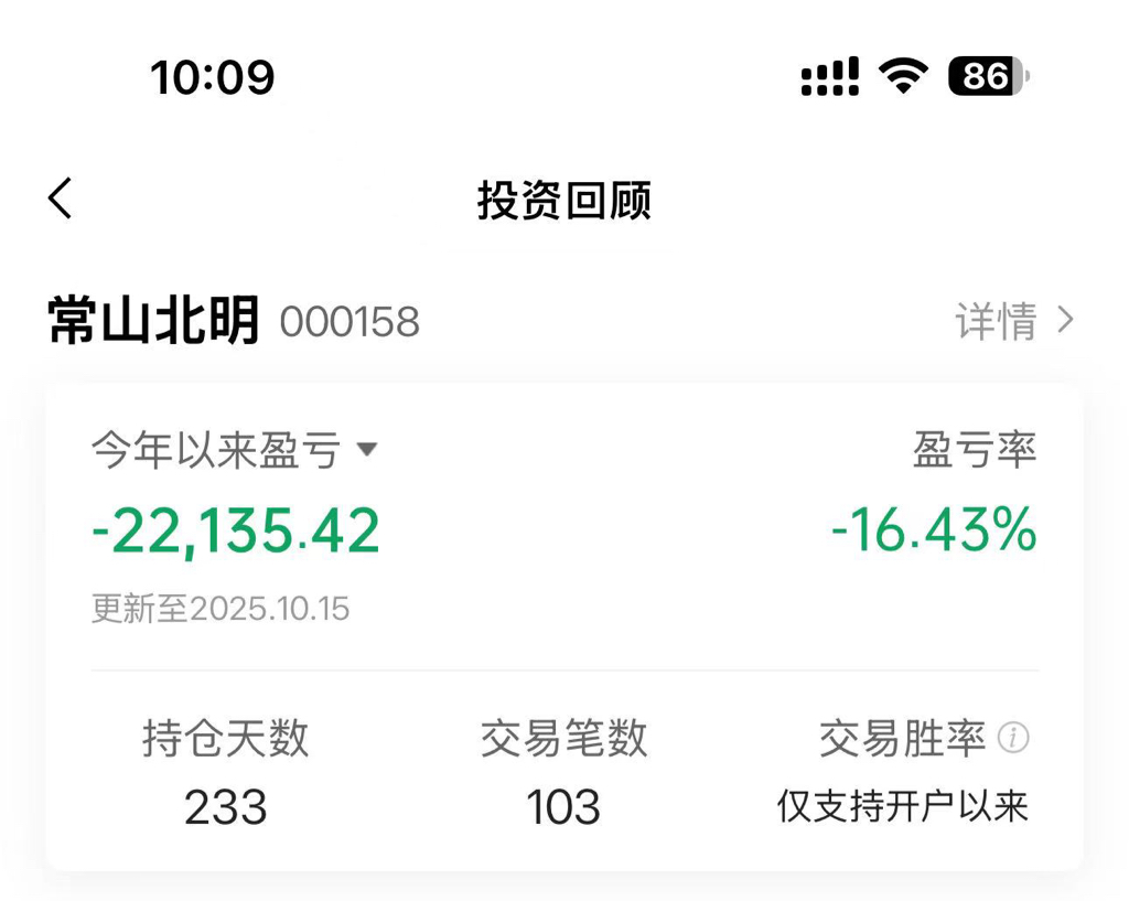 $常山北明(SZ000158)$ 我坚持不住了!拿了200多天29.2的本加仓加到27,坚持了那么多天你是真的不涨,看外围这几个月自选好多股都在翻倍而你每天连续着你垃圾步伐的走势!再见吧!你个垃圾弹棉花做裤衩的出生