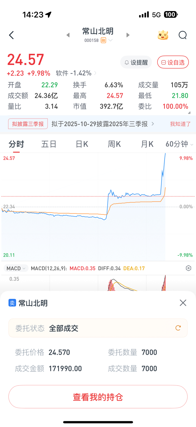 $常山北明(SZ000158)$ 留下的发财