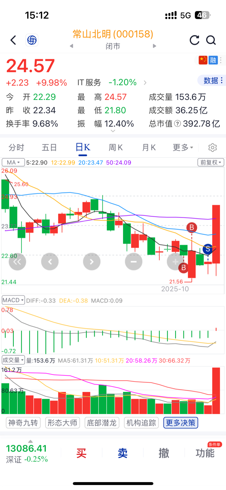 $常山北明(SZ000158)$ 拿了4天,昨天没亏本走的,今天涨停,大腿拍断