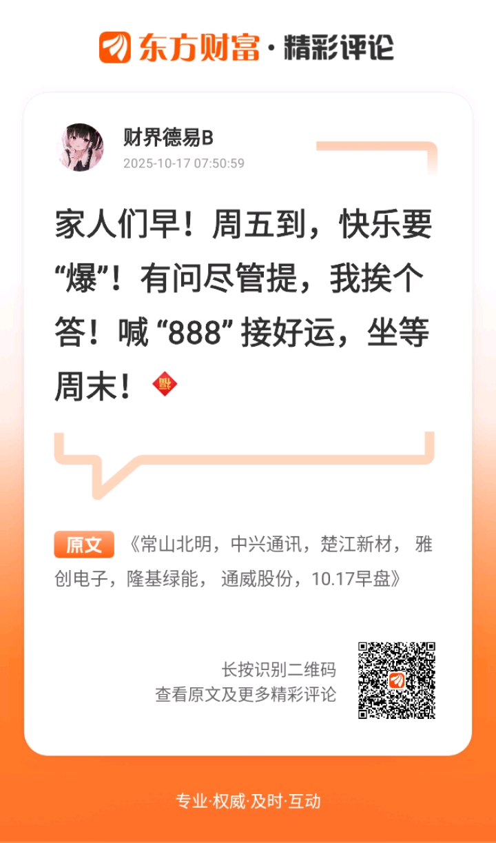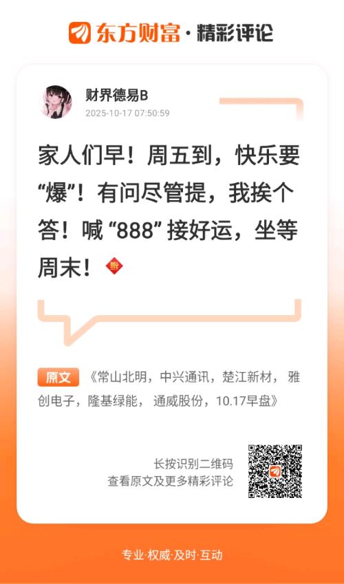 我不是来装 “厉害” 的,就是你隔壁工位那个每天跟你一起吐槽 “老板画饼”、一起分享炒股踩坑经历的同事,赚了咱一起乐,亏了咱一起吐槽。今天周五了,咱就掰扯 3 只值得盯的标的 + 3 只持仓票,每只都把亮点、操作说透,帮你理清新天该盯啥、咋应对,争取周末能安心吃顿好的。