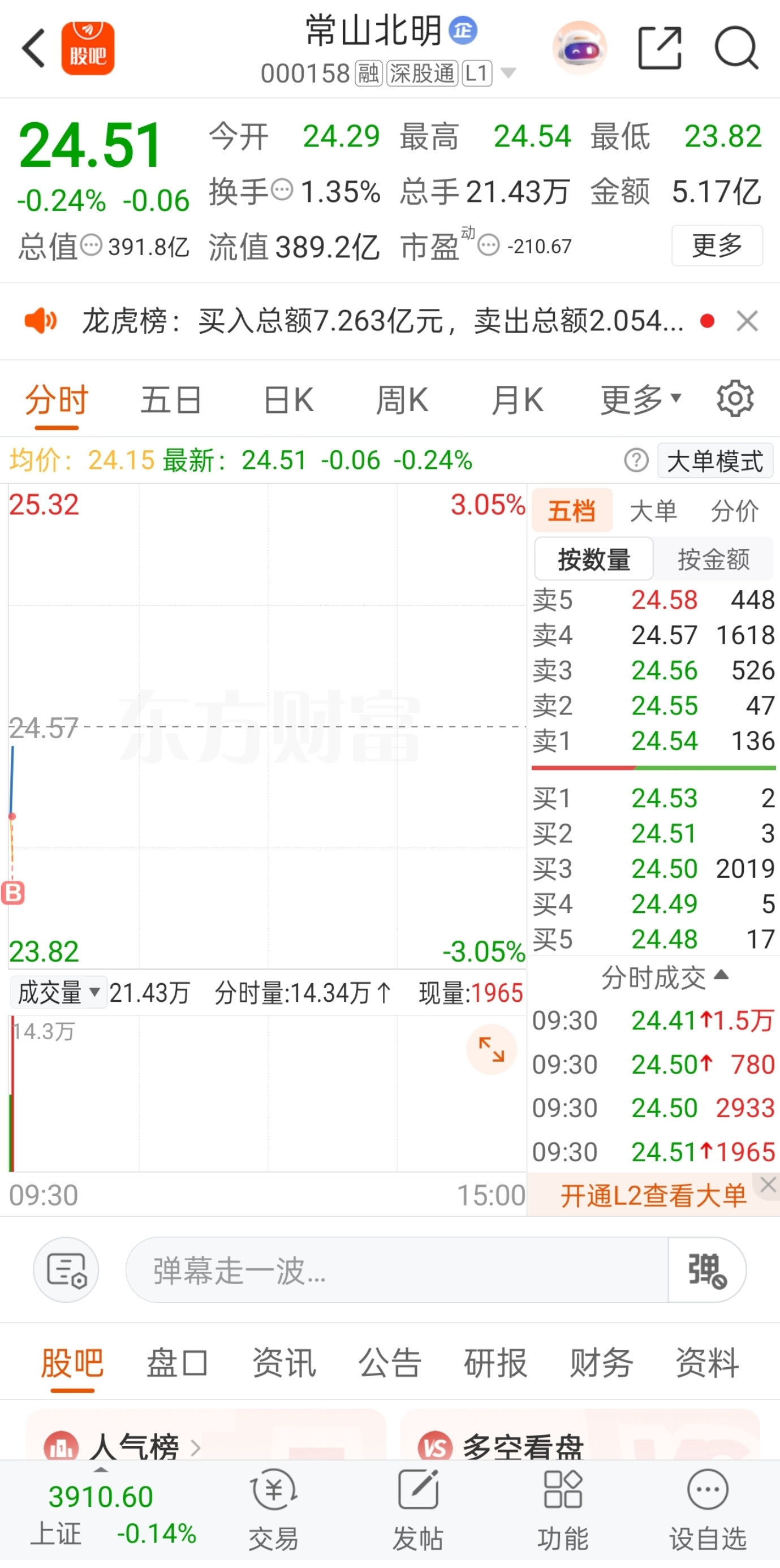 开盘选择水下介入个股$常山北明(SZ000158)$ 期待你的表现