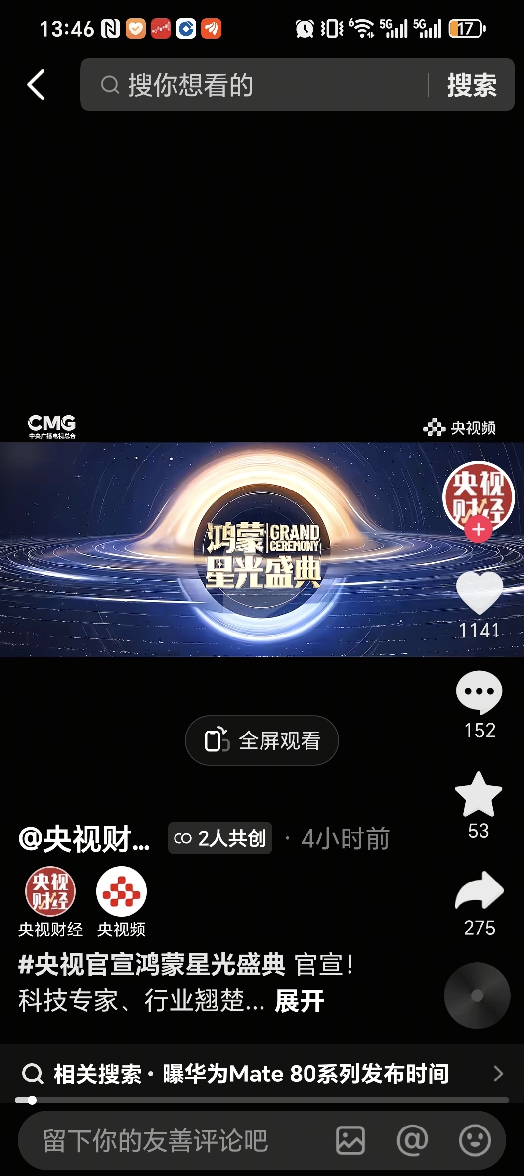 11月28号鸿蒙星光盛典官宣,锁定央视视频,央视新闻,央视财经,cctv2