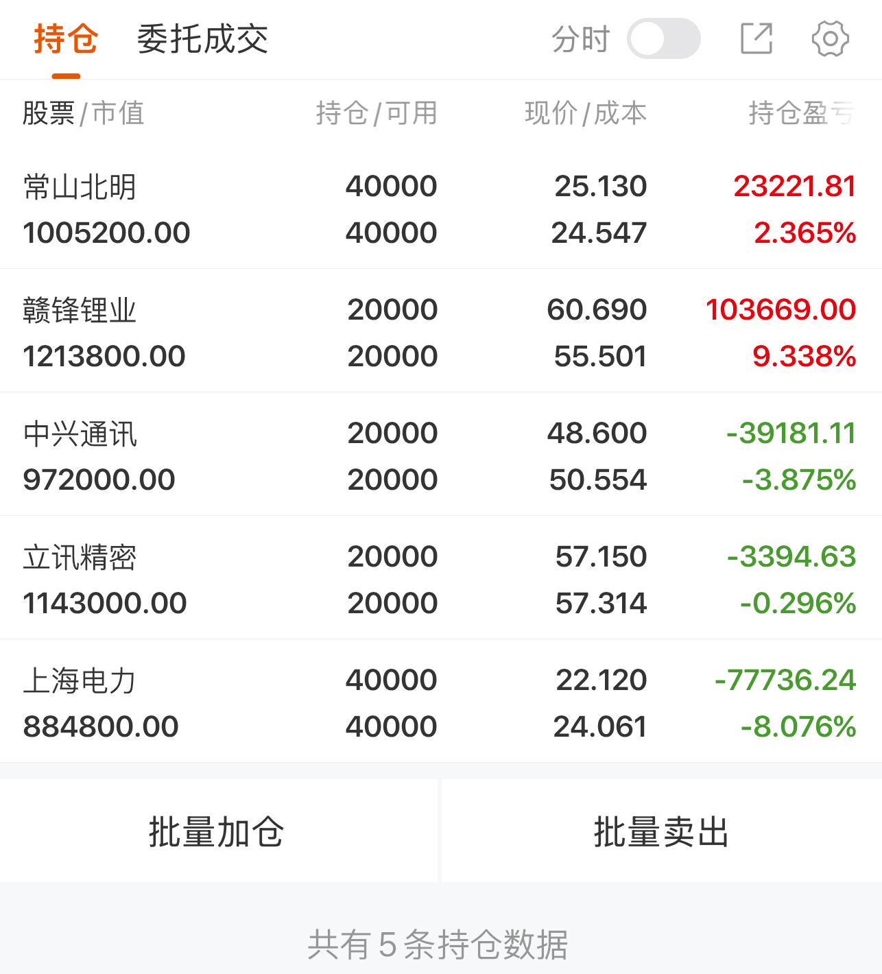 手中持仓