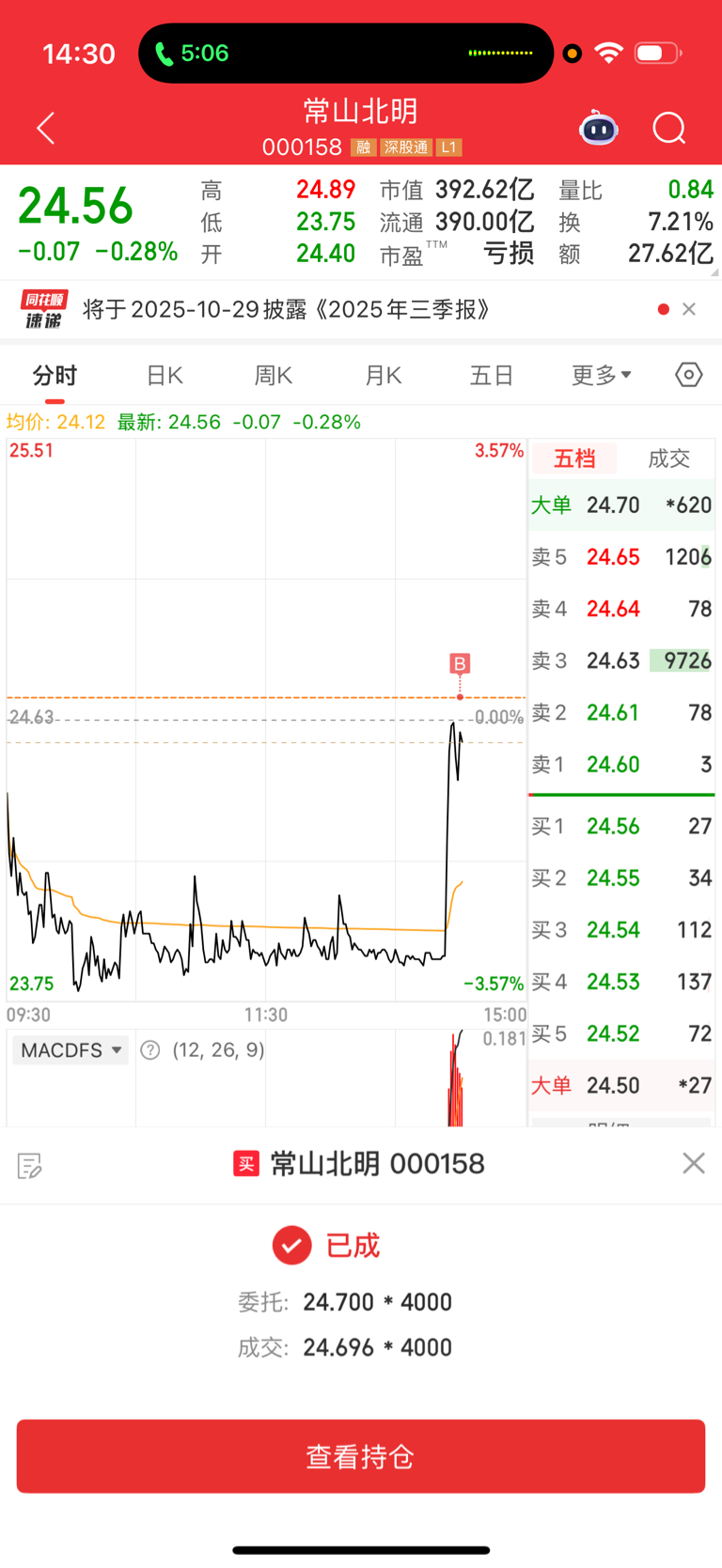 $常山北明(SZ000158)$ 第一次来就当主动进套吧