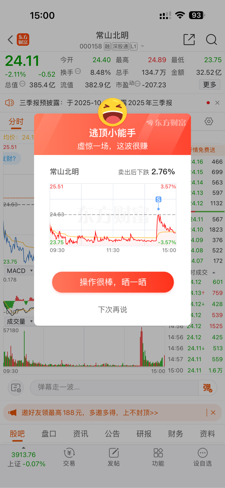 $常山北明(SZ000158)$ 跑得快