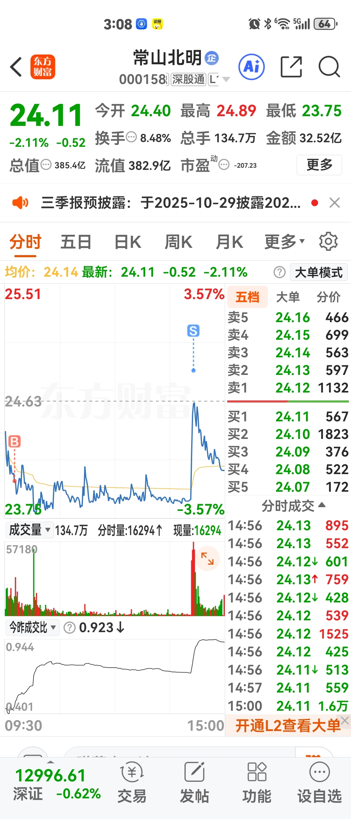 $常山北明(SZ000158)$ #收盘点评# #炒股日记# 完美