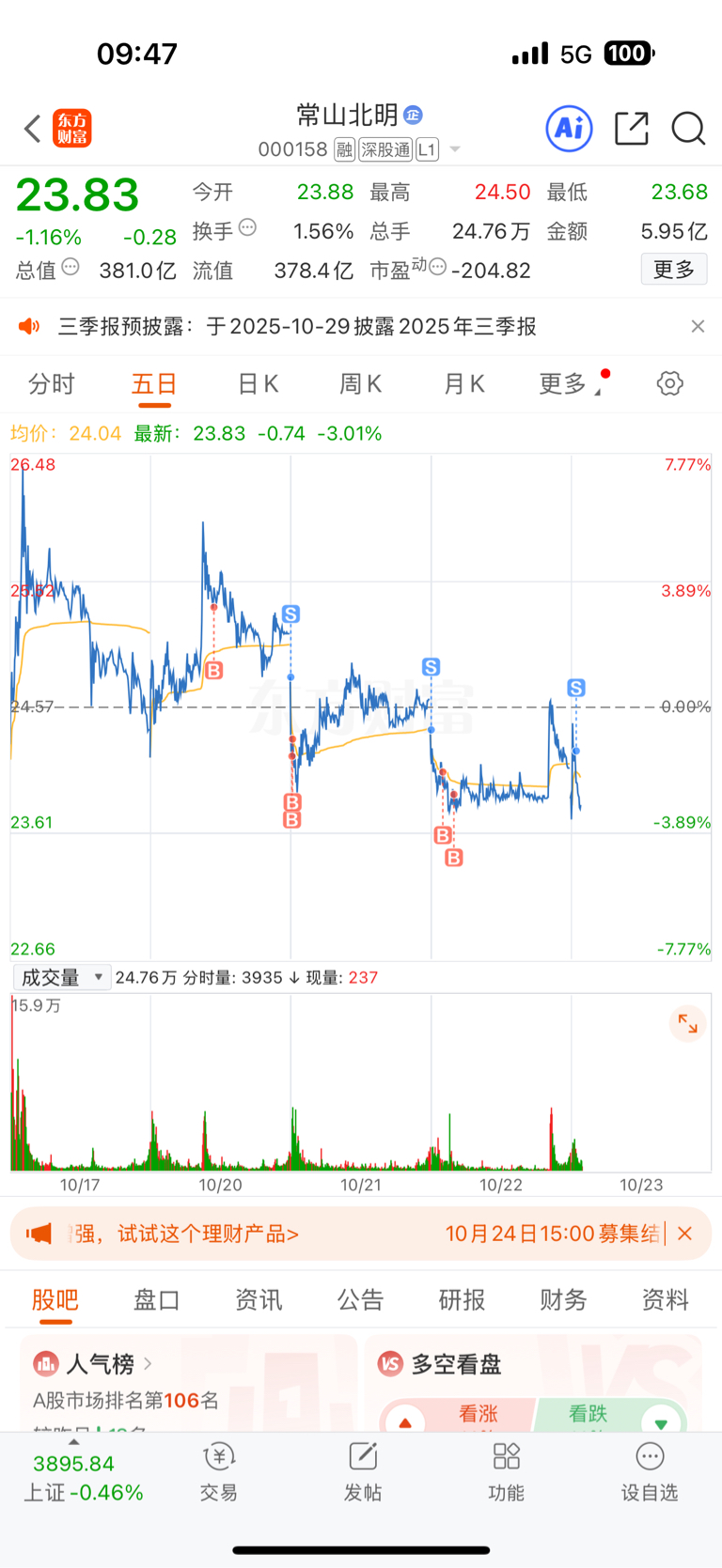 $常山北明(SZ000158)$ 一拉就砸真没意思啊,玩了四天亏了六百手续费走了