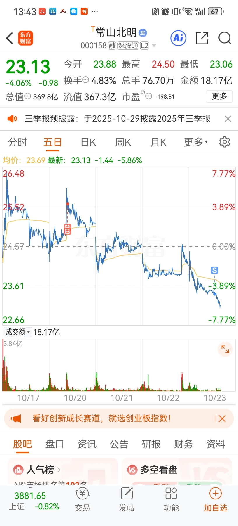 $常山北明(SZ000158)$ 拉黑,再见
