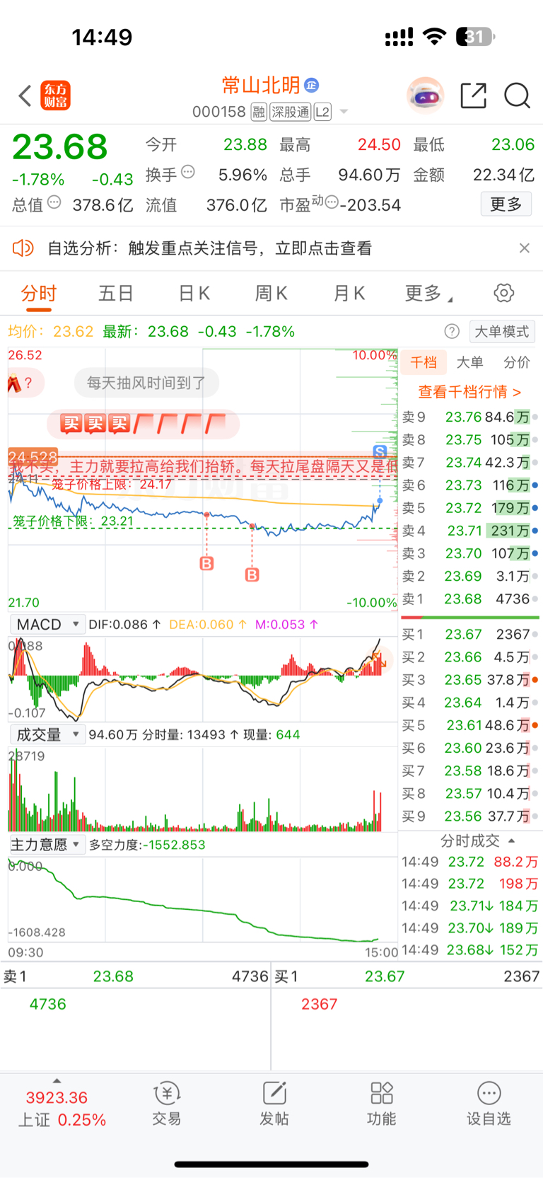 $常山北明(SZ000158)$ 娘的惊心动魄