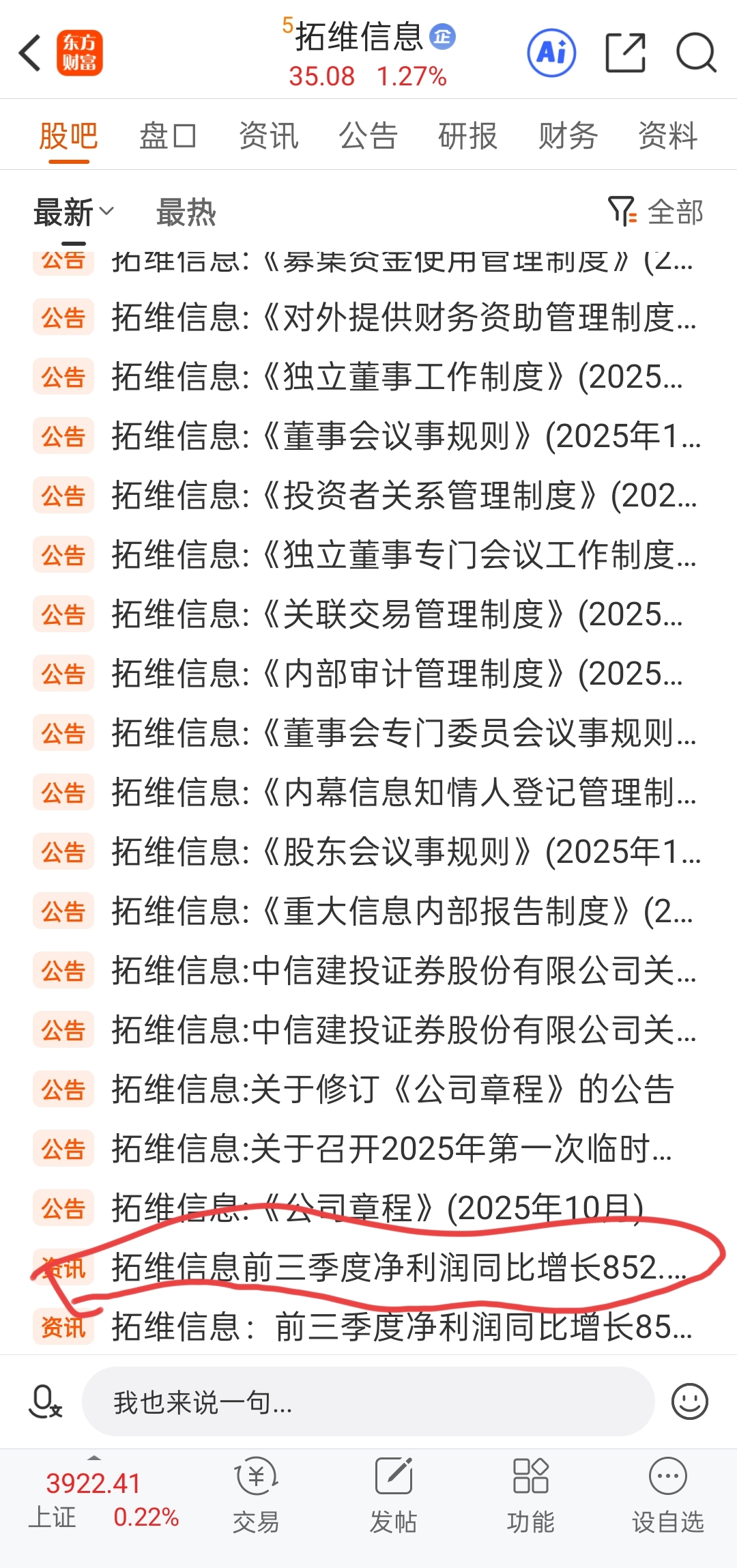 拓维信息第三季度归母净利润增长852.03%。明天要启动主升浪了。