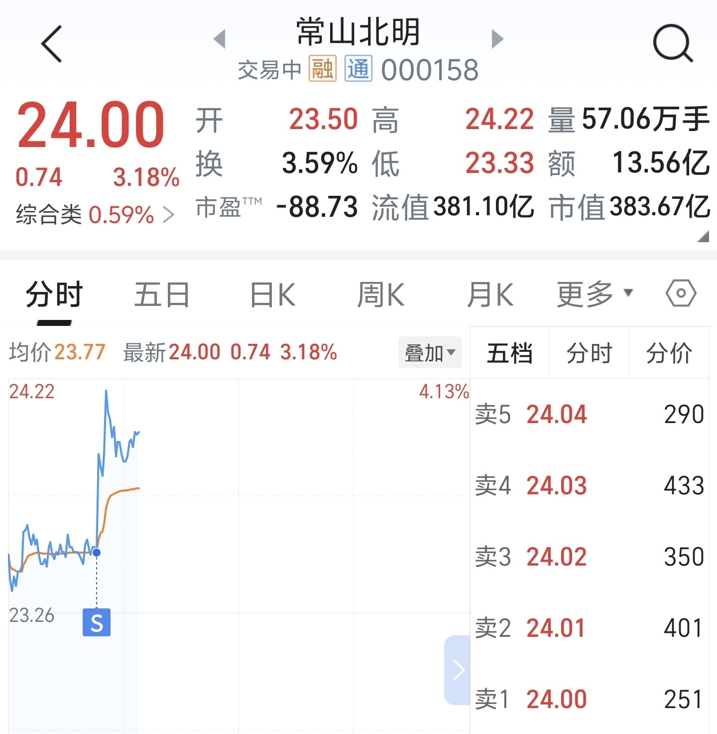 $常山北明(SZ000158)$