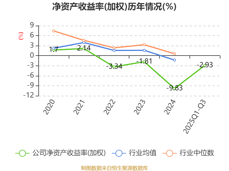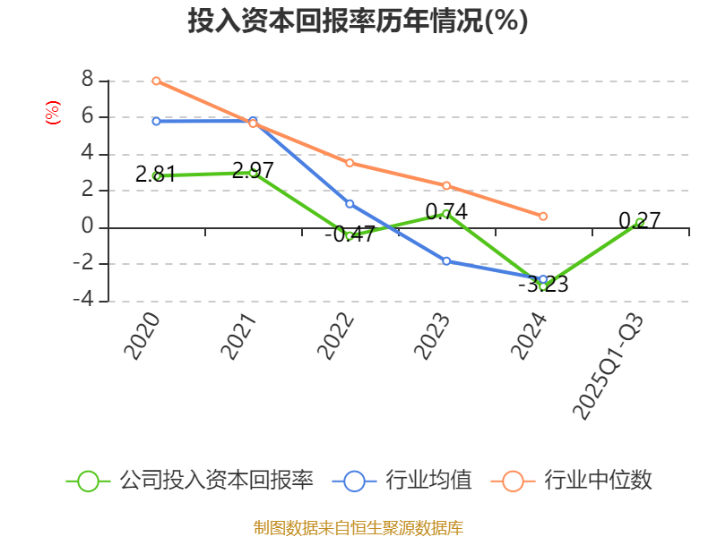 盈利能力方面, 2025年前三季度公司加权平均净资产收益率为-2.93%,同比上升1.88个百分点。公司2025年前三季度投入资本回报率为0.27%,较上年同期上升1.63个百分点。